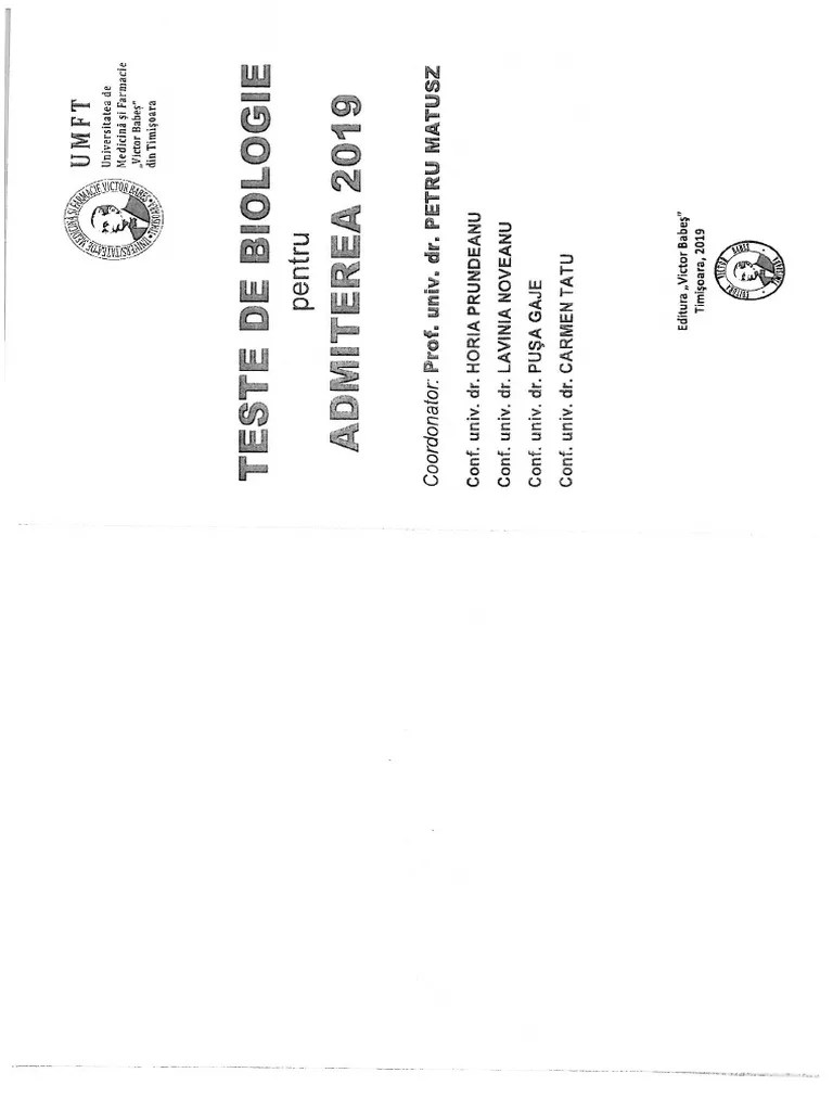 0 full pdfs related to this paper. Teste admitere umf carol davila. No files in this folder. Sign in to add files to this folder. Ideal pentru elevii ce vor sa studieze pentru admiterea la medicina. 0 full pdfs related to this paper.. Cartea este structurata pe 13 capitole si 5 teste generale de biologie.