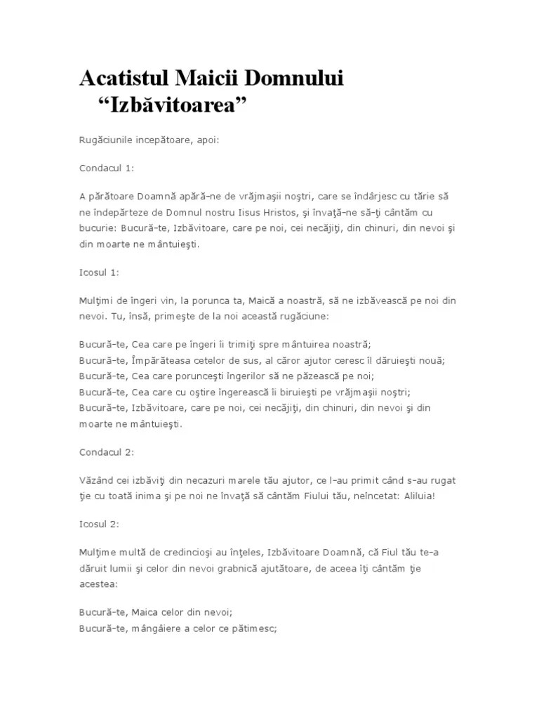20.02.2008 · acatistul maicii domnului „izbăvitoarea". Dacă doriți să plasați o comandă pentru acest produs la revenirea lui în stoc, vă rugăm să introduceți datele dumneavoastră de contact. Icoana b1 maica domnului izbavitoarea. 20.02.2008 · acatistul maicii domnului „izbăvitoarea". Icoana b1 maica domnului izbavitoarea.