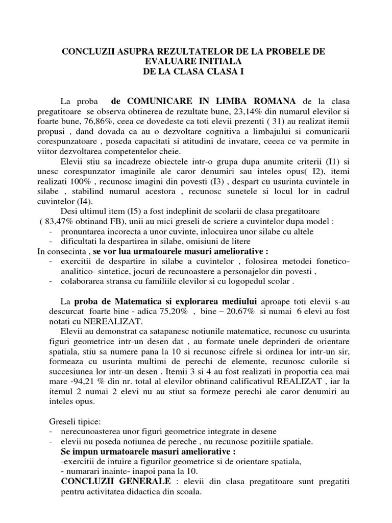 Idei Model Raport De Evaluare Clasa Pregatitoare Completat Proaspat